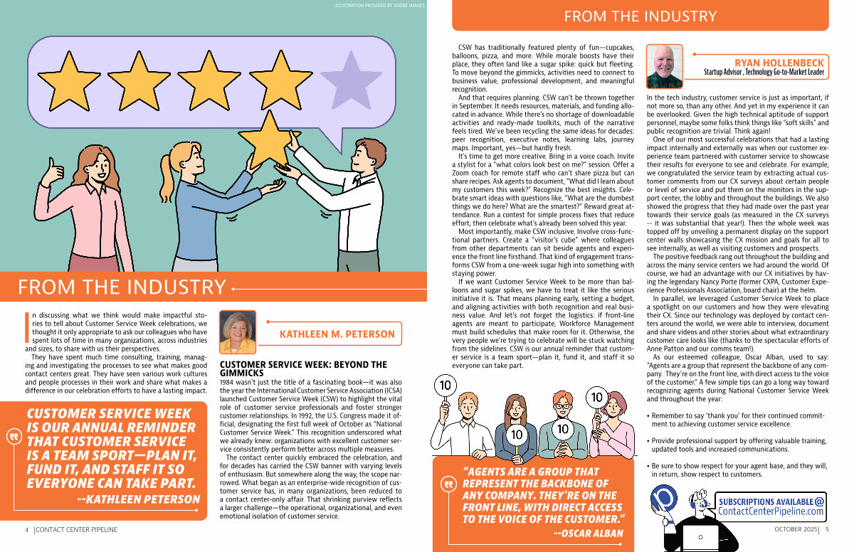 Most importantly, make CSW inclusive. Involve cross-functional partners. Create a“ visitor’ s cube” where colleagues from other departments can sit beside agents and experience the front line firsthand. That kind of engagement transforms CSW from a one-week sugar high into something with staying power.