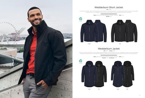 Our short mid-waist length version of men’ s Wedderburn Jacket. Designed in high quality WeatherTec™ recycled polyester blended with spandex to provide reliable protection in the rain. The Wedderburn Jacket is windproof and breathable, equipped with waterproof zips and an inner pocket.