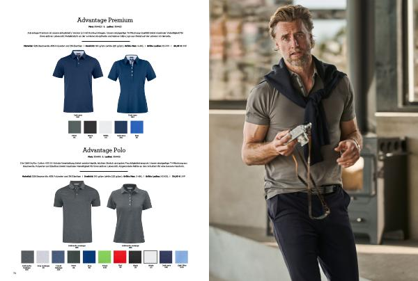 Material : 52 % Baumwolle , 45 % Polyester und 3 % Elasthan I Gewicht : 190 g / qm ( white 225 g / qm ). Größe Men : S-4XL I Größe Ladies : XS-XXL I 39,95 € UVP
