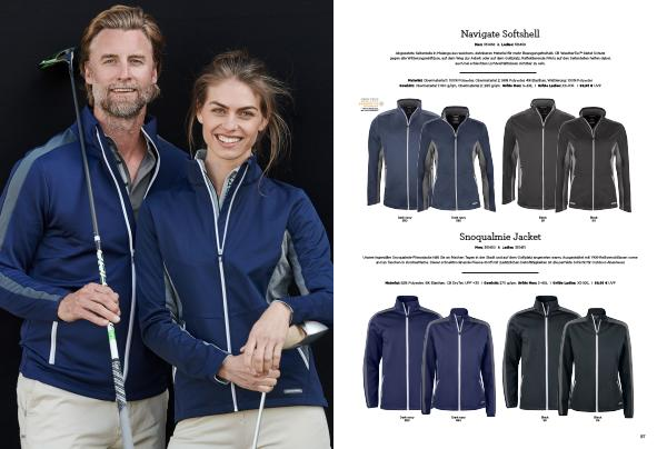 Material : Obermaterial 1 : 100 % Polyester , Obermaterial 2 : 96 % Polyester , 4 % Elasthan , Wattierung : 100 % Polyester Gewicht : Obermaterial 1 : 180 g / qm , Obermaterial 2 : 285 g / qm Größe Men : S – 4XL I Größe Ladies : XS – XXL I 99,95 € UVP