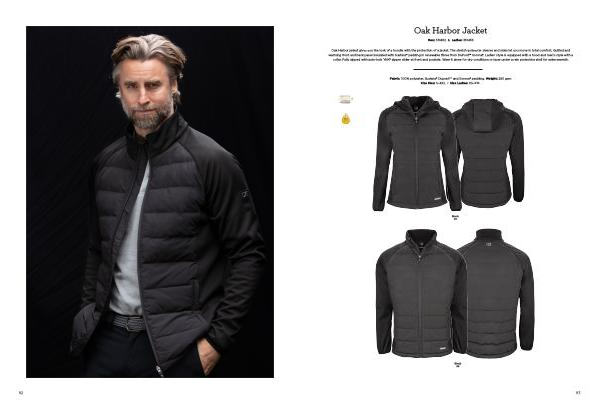 Oak Harbor jacket gives you the look of a hoodie with the protection of a jacket . The stretch-polyester sleeves and sides let you move in total comfort . Quilted and warming front and back panel insulated with Sustans ® padding in renewable fibres from DuPont™ Sorona ®. Ladies ’ style is equipped with a hood and men ’ s style with a collar . Fully zipped with auto-lock YKK ® zipper slider at front and pockets . Wear it alone for dry conditions or layer under a rain protective shell for extra warmth .