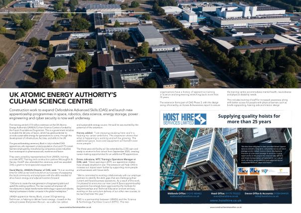 Construction work to expand Oxfordshire Advanced Skills ( OAS ) and launch new apprenticeship programmes in space , robotics , data science , energy storage , power engineering and cyber security is now well underway .
