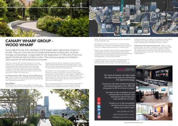 The plot is articulated as a white precast concrete plinth that binds together community uses at ground level . As these buildings mark the eastern gateway to the wider development , the plinth gently divides between the blocks to form a landscaped public route into Wood Wharf . leading architecture of neighbouring buildings at Wood Wharf . Combined with a site-wide carbon reduction of 31 %, the project raises the bar for affordable housing in London .