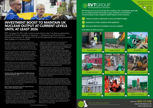 INVESTMENT BOOST TO MAINTAIN UK NUCLEAR OUTPUT AT CURRENT LEVELS UNTIL AT LEAST 2026