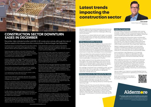 We asked senior decision-makers in the construction sector their opinions , personal and professional , on the topic of sustainability , including the approach to climate change . Encouragingly , their response was overwhelmingly positive , with businesses spending more time and money investigating and implementing practices to make their businesses more sustainable .