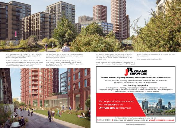 Latitude Blue will comprise 116,000 sq ft . The contemporary design features a double-height reception piazza , which creates a striking first impression .