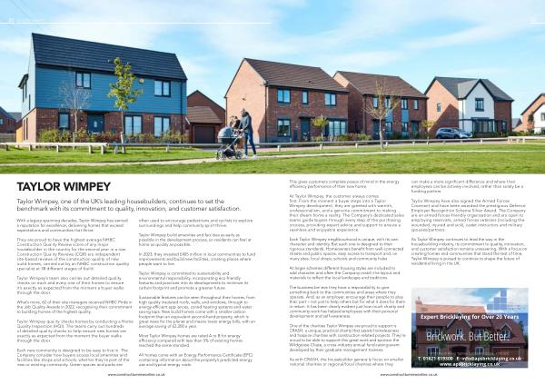 As Taylor Wimpey continues to lead the way in the housebuilding industry , its commitment to quality , innovation , and customer satisfaction remains unwavering . With a focus on creating homes and communities that stand the test of time , Taylor Wimpey is poised to continue to shape the future of residential living in the UK .