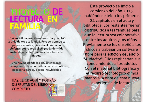Este proyecto se inició a comienzo del año 2015, habiéndose leído los primeros 24 capítulos en el aula y biblioteca. Los restantes fueron distribuídos a las familias para que la lectura sea colaborativa entre los adultos y los niños.