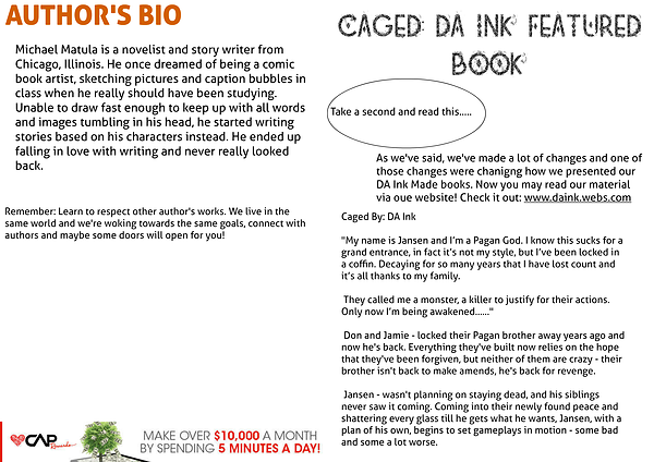 As we've said, we've made a lot of changes and one of those changes were chanigng how we presented our DA Ink Made books. Now you may read our material via oue website! Check it out: www.daink.webs.com