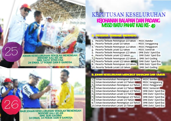 7. Johan Keseluruhan Perempuan 15 Tahun : SMK Dato’ Syed Esa