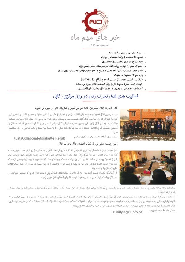 اتاق تجارت زنان افغانستان به تاریخ 42 جدی 1397 شماری از اعضا اتاق را در دفتر مرکزی اتاق جهت مرور دست آورد های سال 2018 و شریک نمودن پالن های سال 2019 میزبانی نمود . این اولین جلسه مشورتی اتاق تجارت زنان با زنان تجارت پیشه در سال2019 بود . در این جلسه ، دست آورد های سال گذشته مرور گردید و به بعضی از دست آورد های عمده اشاره گردید . زنان تجارت پیشه فرصت این را داشتند تا در این جلسه در مورد پالن های سال 2019 نظریات شان را ارائه نمایند . از آنجاییکه یکی از دست آورد های بزرگ اتاق در سال 2018 اشتراک پنج تجارت زنان در پارک صنعتی میباشد ، از مسئوالن ریاست پارک های صنعتی دعوت گردید تا برای اعضای اتاق درین زمینه