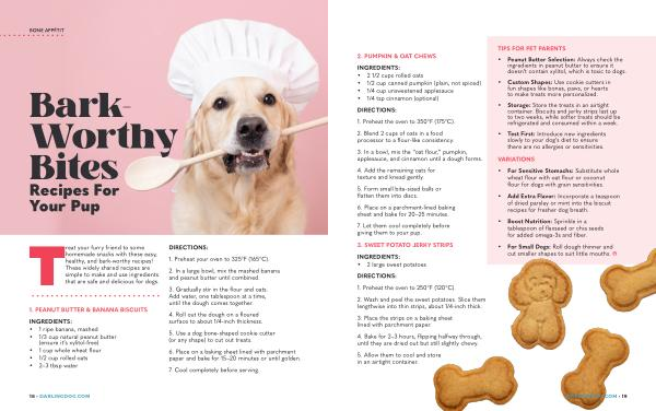 Treat your furry friend to some homemade snacks with these easy , healthy , and bark-worthy recipes ! These widely shared recipes are simple to make and use ingredients that are safe and delicious for dogs .
