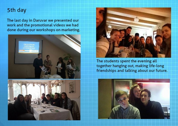 The last day in Daruvar we presented our work and the promotional videos we had done during our workshops on marketing.