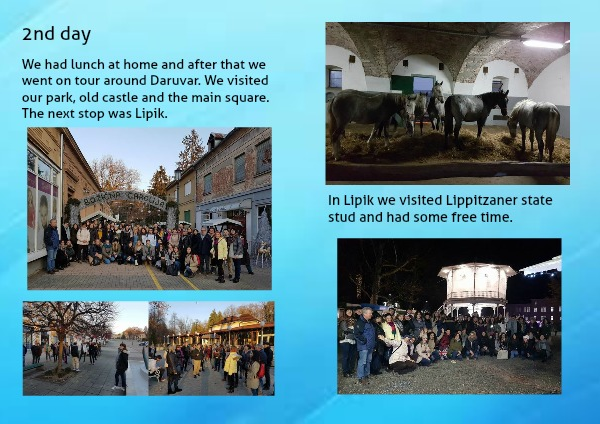 We had lunch at home and after that we went on tour around Daruvar. We visited our park, old castle and the main square.