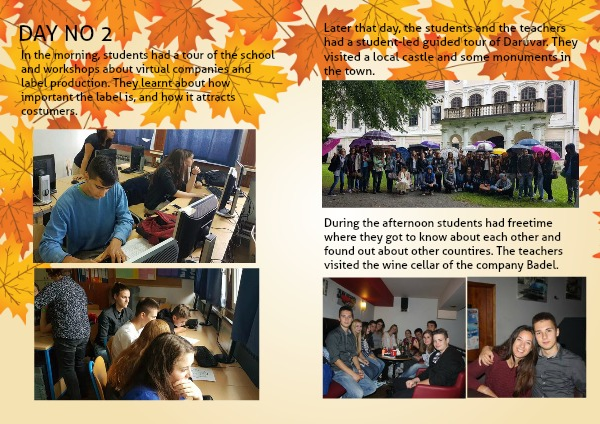 During the afternoon students had freetime where they got to know about each other and found out about other countires. The teachers visited the wine cellar of the company Badel.