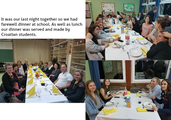 It was our last night together so we had farewell dinner at school. As well as lunch our dinner was served and made by Croatian students.