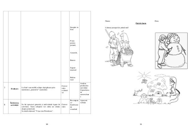 Nume: Data: Fişă de lucru Coloraţi peisajul de primăvară! 91