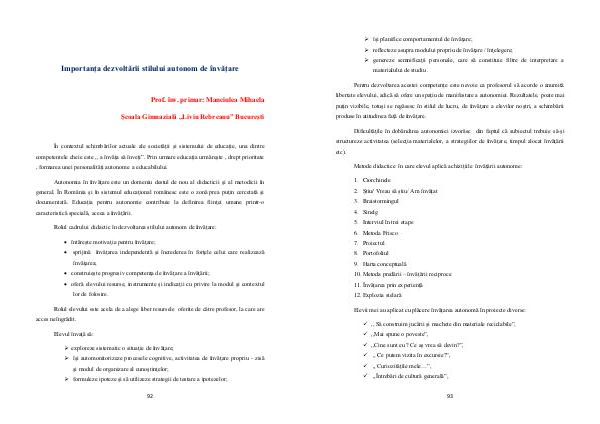 Importanța dezvoltării stilului autonom de învățare