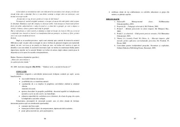 Abordarea integrată a activităţilor promovează învăţarea centrată pe copil, acesta