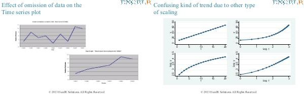80 Confusing kind of trend due to other type of scaling 5 10 t 15 20 0 5 10 t 15 20 0 1 0 1 Log t 2 3 2 3 0 © 2013 ExcelR Solutions. All Rights Reserved Log t
