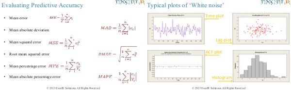 Typical plots of ‘White noise’ Time plot Lag plot ACF plot Histogram © 2013 ExcelR Solutions. All Rights Reserved