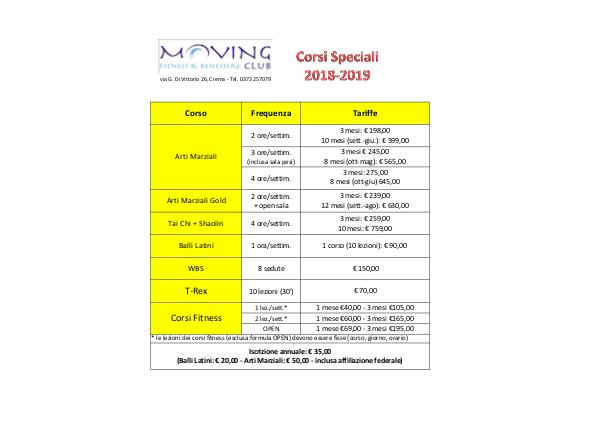 Date inizio corsi 2018/2019 tariffe corsi speciali 18-19