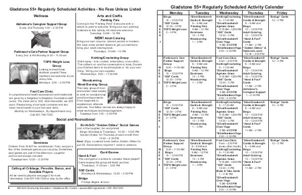 Gladstone 55 + Regularly Scheduled Activities- No Fees Unless Listed