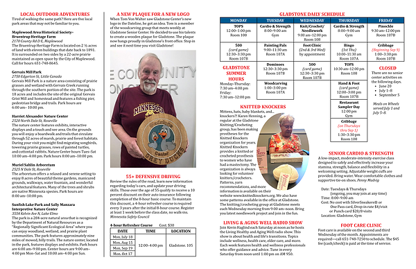 GLADSTONE DAILY SCHEDULE MONDAY TUESDAY WEDNESDAY THURSDAY FRIDAY