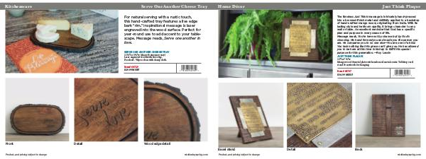 Laser engraved wood with live edge.