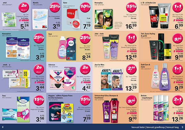 * M. u. v. geneesmiddelen. ** Korting wordt verrekend als 25 % kassakorting bij aankoop van 2 producten. |