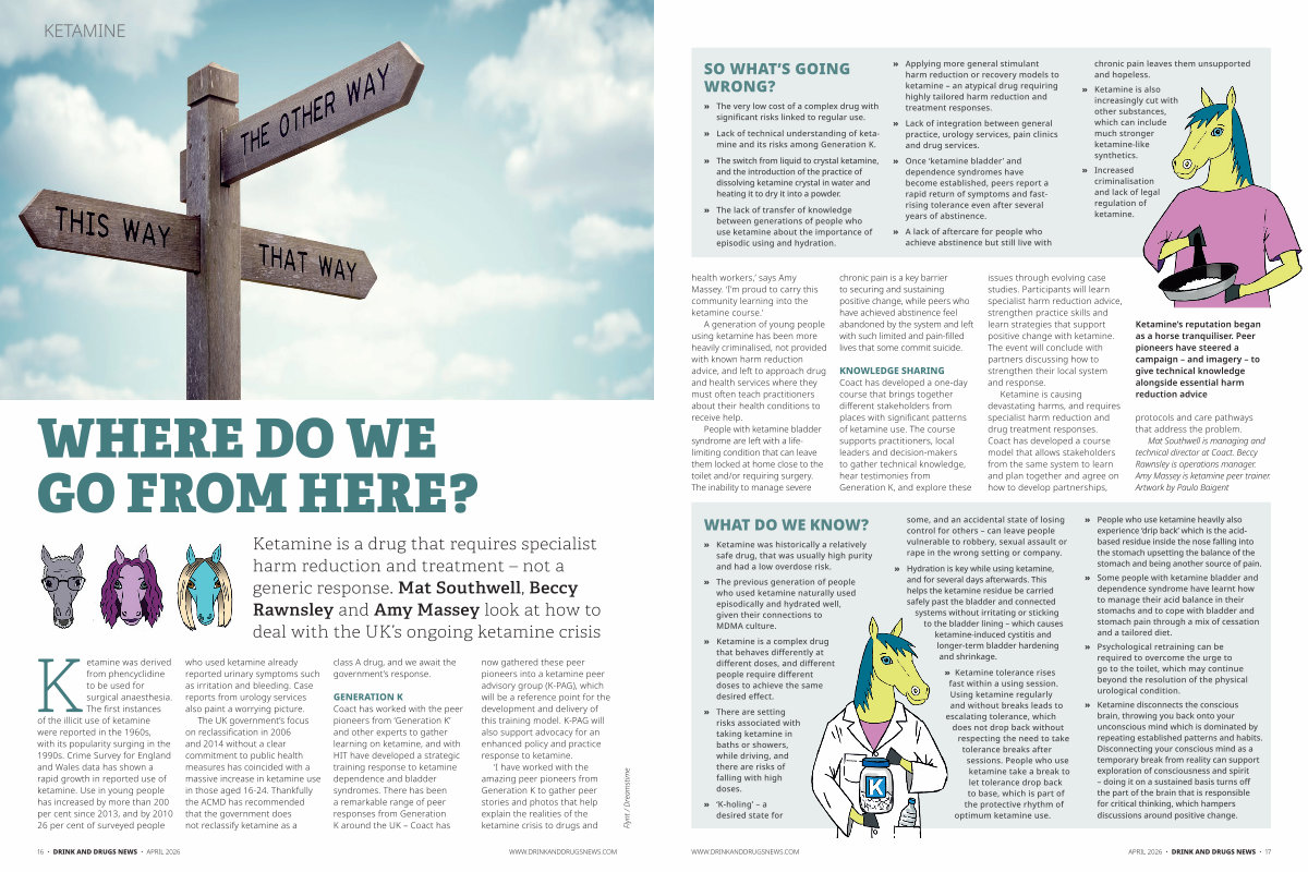 Ketamine is a drug that requires specialist harm reduction and treatment – not a generic response. Mat Southwell, Beccy Rawnsley and Amy Massey look at how to deal with the UK’ s ongoing ketamine crisis