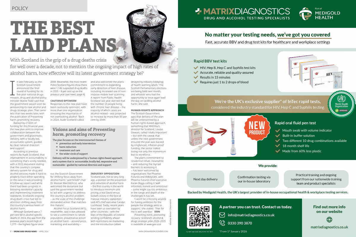 8 • DRINK AND DRUGS NEWS • APRIL 2026 WWW. DRINKANDDRUGSNEWS. COM