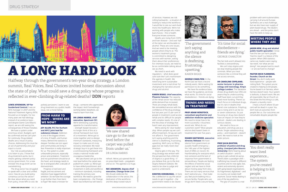 We need to work with regulators – what does good care look like? Let’ s mainstream the agenda in health. We need long-term sustainable investment and a real driver for changing the narrative around drugs and alcohol.