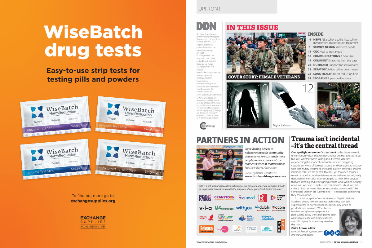 Our spotlight on women’ s treatment in this issue makes it uncomfortably clear that women’ s needs are being recognised too late. Whether we’ re talking about female veterans experiencing the shock of civilian life, women navigating custody, survivors of domestic abuse, or those trying to engage with community treatment, the same pattern emerges. Trauma isn’ t incidental, it’ s the central thread – yet too often services remain shaped around a crisis response, with models originally designed for men. But it’ s encouraging to hear from services that are listening and redesigning around what women actually need, and we have to make sure this practice is built into the culture of our services. Gender-responsive care shouldn’ t be something women are lucky to find— it should be something they can count on.