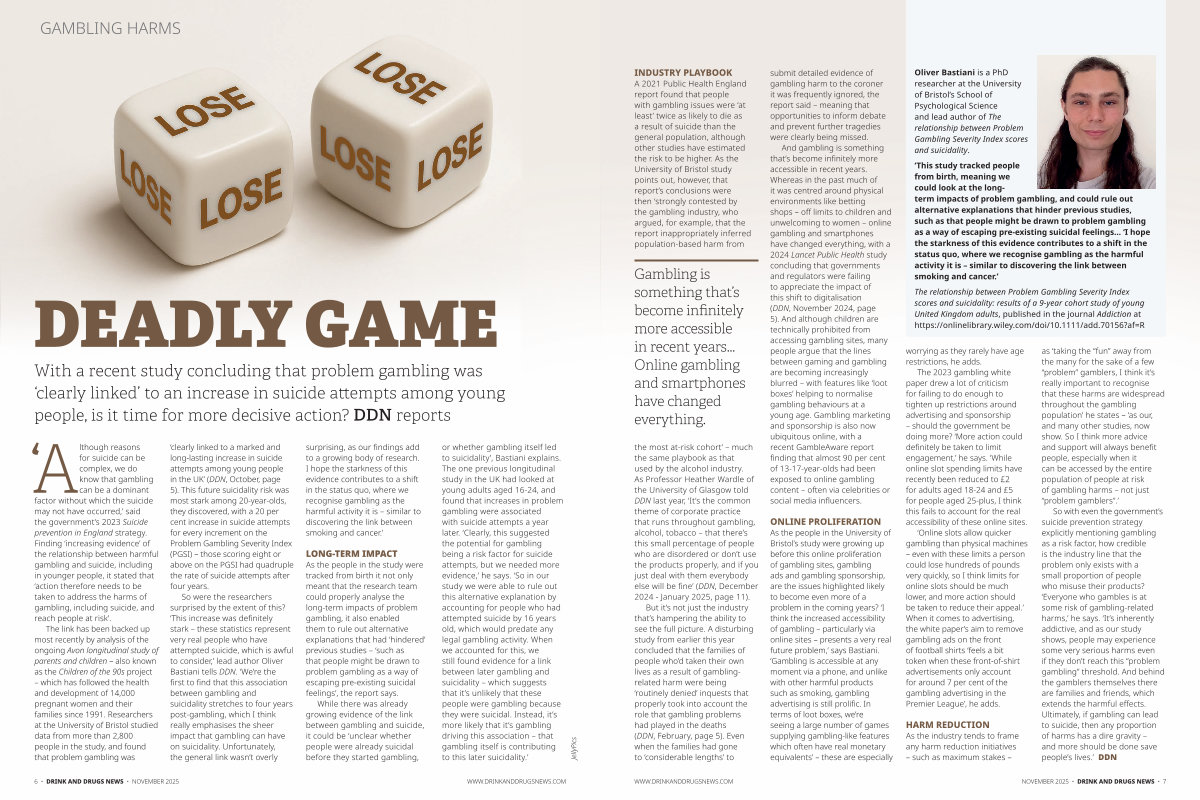 So were the researchers surprised by the extent of this?‘ This increase was definitely stark – these statistics represent very real people who have attempted suicide, which is awful to consider,’ lead author Oliver Bastiani tells DDN.‘ We’ re the first to find that this association between gambling and suicidality stretches to four years post-gambling, which I think really emphasises the sheer impact that gambling can have on suicidality. Unfortunately, the general link wasn’ t overly