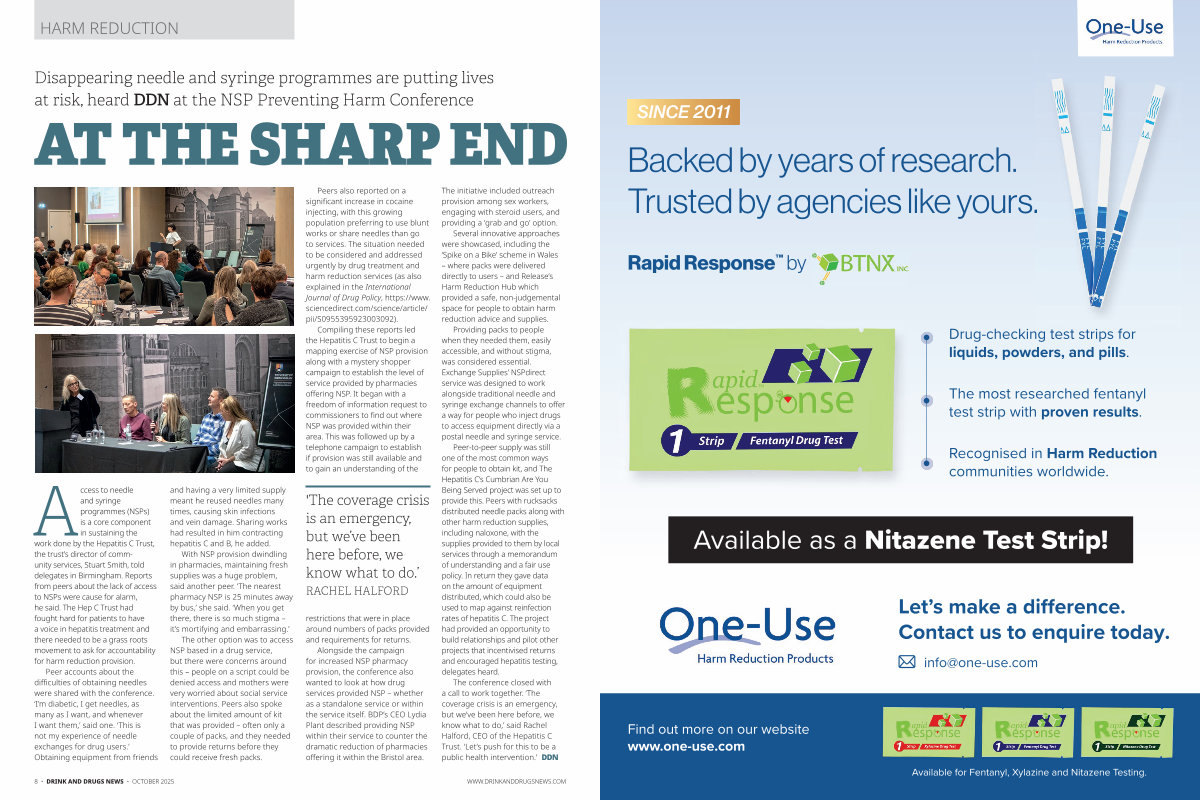 Several innova tive approaches were showcased, including the‘ Spike on a Bike’ scheme in Wales – where packs were delivered directly to users – and Release’ s Harm Reduction Hub which provided a safe, non-judgemental space for people to obtain harm reduction advice and supplies.