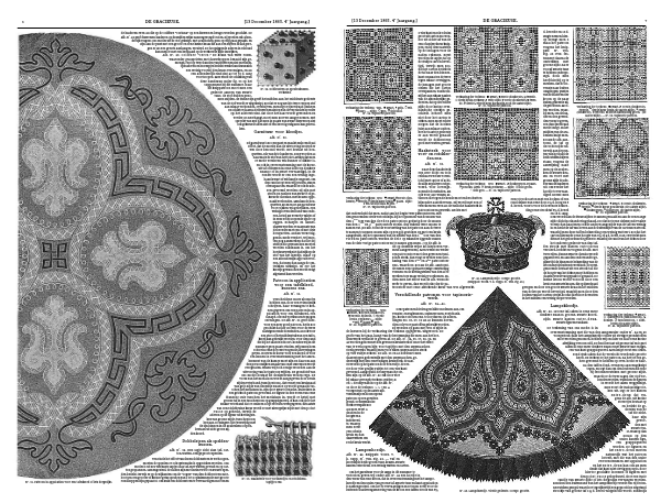 derlijk volgens ons model uit de stof geknipt, met arabischen gom op stijf gaas geplakt, en