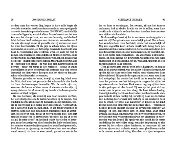 Toen zij ontwaakte was zij weêr geheel haarzelve, en kon zij zich al de gebeurtenissen van den nacht te binnen brengen, tot op den tijd dat haar vader haar verliet, maar daarna was haar alles onbekend. Zij opende de oogen om te zien, waar men haar had neêrgelegd. En, zonder het hoofd om te wenden wist zij door het patroon van het behangsel te zeggen dat zij in het spreekvertrek van den heer Fleck was en begreep zij daarheen te zijn gedragen uit den brand. Zij was op het punt zich op nieuw over te geven aan den slaap, die haar telkens beving, toen zij plotseling dacht aan haar vader. met beschaamde wan-gen bedacht zij hoe welligt hij, terwijl zij daar zoo in kalme rust nederlag, hier of daar zich verborg in een donkeren hoek van de straat, ter prooi aan naberouw en lijden; en het kind kromp ineen van ontzetting bij die nieuwe vrees. – “Misschien hebben zij hem ontdekt en naar de gevangenis gebragt!” Zij steunde op den bezeerden arm en keek rond. Daar stond DANIËL CHORLEY, omgeven van eene bewonderende groep, en vertelde met veel welsprekendheid van het uitbreken en voort-woeden van den brand. Hij sprak van zijn schrik bij de eerste ontdekking der vreeselijke ramp, van zijne inspanning en zijn gevaar bij het redden zijner kinderen; en naarmate hij het slot van zijn verhaal naderde, waarin maar gloed kwam omdat er de meeste waarheid in lag, kleurden zich zijne wangen en