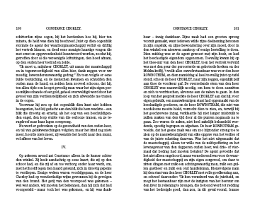 Op zekeren avond zat Constance alleen in de kamer achter den winkel. Zij keek aandachtig op eene kaart, die zij op den schoot had, en die zij af en toe verborg onder haar werk, om, met het hoofd tegen den haard geleund, zich in droevig gepeins te verdiepen. Eenige weken waren voorbijgegaan, en de heer Chorley had op wonderdadige wijze gewonnen bij de gevolgen van den brand. Het getij van den voorspoed was gekomen – wel wat anders, wij moeten het bekennen, dan hij zich dat had voorgesteld – maar toch het was gekomen, en hij was dank-