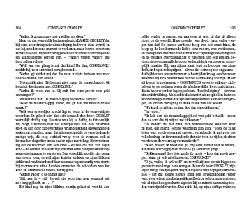 zelde verder te zeggen, en van toen af wist zij dat zij alleen stond op de wereld. Hare moeder was dood, haar vader – er- ger dan dat! De laatste aardsche hoop van het arme kind, de hoop op de beschermende liefde eens vaders, was verdwenen, en in de plaats daarvan trad schrik voor zijne tegenwoordigheid en de treurige overtuiging dat er tusschen hen een geheim be-stond dat voortaan alle hoop op wederzijdsch vertrouwen onmo-gelijk maakte. Hij, van zijnen kant, had nu berouw van zijne drift, en begon te begrijpen – al was dat ook nog zoo ongaarne – dat hij hier een nieuw bezwaar te bestrijden kreeg, een bezwaar waarvan hij zich bewust was dat het hardnekkig zou zijn. Maar hij begon te redeneren – CONSTANCE’S vrees te stillen – zich-zelven te verdedigen tegen de afschuwelijke beschuldiging, die in hare woorden lag opgesloten. “Beschuldiging” – dat was zijne uitdrukking. Als slechte daden niet als zeepbellen kunnen worden weggeblazen dan spreken wij daarvan als beschuldigin-gen, en vinden verligting in denk klank van dat woord.