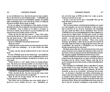 Hoe verheugde het CONSTANCE, alleen te zijn! Maar nu staarde zij niet langer in het vuur! Nu kende zij heen hoop – bijna zelfs geen vrees meer! Het ergste was gekomen. Zij had het verwacht, en was er op voorbereid – zij meende dat ten min- ste – en zij begon te handelen met blinde onderwerping aan eenig vroeger gevormd besluit. Zij ging zitten om haren vader te schrijven; dit het allereerst, omdat dit de hardste taak was. Tranen druppelden neder op het papier en de inkt vloeide, waar die tranen vielen. Zij kon het naauwelijks zelve lezen, maar het was te laat om op nieuw te beginnen; en zij vouwde het ge-