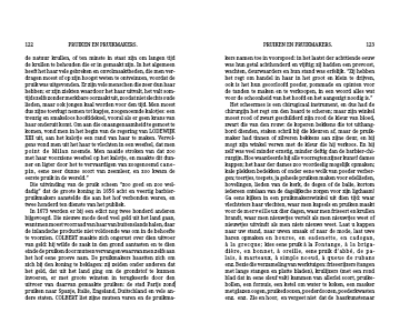 de natuur krullen, of ten minste in staat zijn om langen tijd de krullen te behouden die er in gemaakt zijn. In het algemeen heeft het haar vele gebreken en onvolmaaktheden, die men ver-dragen moest of op zijn hoogst weten te ontveinzen, voordat de pruik was uitgevonden. Er zijn vele menschen die zeer dun haar hebben; er zijn ziekten waardoor het haar uitvalt, het valt som-tijds zelfs zonder merkbare oorzaakt uit, zoodat niet slechts oude lieden, maar ook jongen kaal worden voor den tijd. Men moest dus zijne toevlugt nemen tot kapjes, zoogenoemde kalotjes: een treurig en smakeloos hoofddeksel, vooral als er geen krans van haar onderuit komt. Om aan die onaangenaamheid te gemoet te komen, vond men in het begin van de regering van LODEWIJK XIII uit, aan het kalotje een rand van haar te maken. Vervol- gens vond men uit het haar te vlechten in een weefsel, dat men point de Milan noemde. Men naaide stroken van dat zoo met haar voorziene weefsel op het kalotje, en maakte dit dun- ner en ligter door het te vervaardigen van zoogenoemd cane- pin, eene zeer dunne soort van zeemleer, en zoo kwam de eerste pruik in de wereld.”