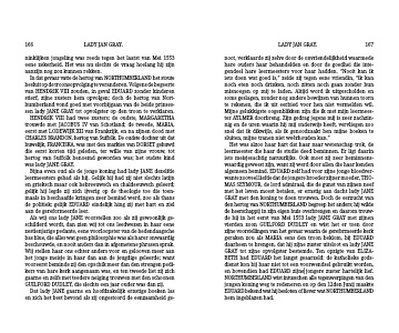 Bijna even oud als de jonge koning had lady JANE dezelfde leermeesters gehad als hij. Gelijk hij had zij niet slechts latijn en grieksch maar ook hebreeuwsch en chaldeeuwsch geleerd; gelijk hij legde zij zich ijverig op de theologie toe die toen- maals in beschaafde kringen zeer bemind werd, zoo als thans de politiek; gelijk EDUARD eindelijk hing zij met hart en ziel aan de gereformeerde leer.