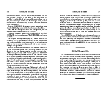 Onder de gewone bezoekers van “Krijgsman’s welvaren” al waren velen hunner ongevoelig en onbeschaafd, waren er wei-nigen, zeer weinigen, die deze treurige dwaling van moeder CATLIN niet eerbiedigden; en nooit dwong haar een ruw gelach of grove scherts tot het erkennen der waarheid, die hare oogen weigerden te zien, en hare ooren te hooren – namelijk, dat hare eenmaal bloeijende dochter, de trots van haar hart, de schoonheid van het dorp, nu eene oude grijze vrouw was als