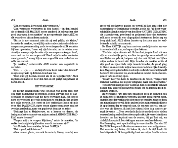groot vel beschreven papier, en terwijl hij het aan ieder der aanwezigen ter bezigtiging toereikte, zeide hij: “gij kent waar-schijnlijk allen het schrift van den Heer ANTOINE DE MAURIAC dit is geschreven, geteekend en gedateerd door den testateur zelf, men noemt dit een olographisch testament. Ieder zag en boog zich koel. ALIX alleen barstte op het zien van het wel-bekende schrift, in tranen uit.