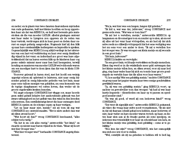“Ik bid u, wat was dat, jufvrouw,” vroeg CONSTANCE met gesmoorde stem. “Wat was er toen hier?”
