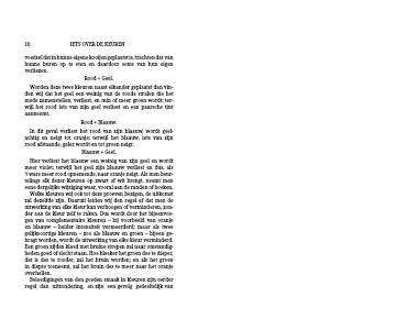 Eenige jaren geleden was ik te St. Petersburg, en moest daar eene dame van hoogen rang eenige stukken laten teekenen. Zij was reeds oud, en hare huid, ofschoon nog fijn, had gevolgelijk veel van de zachtheid en glans der jeugd verloren; maar aan den middenvinger van hare hand droeg zij een ontzaggelijke turkoois, waardoor de huid zelfs meer dan natuurlijk wit scheen. Toen wist ik dat niet te verklaren, maar daar ik sedert eenige onderzoekingen in de leer der kleuren gemaakt heb, is de reden mij nu duidelijk genoeg: het blaauw slorpte als ’t ware alle roode stralen op en liet slechts wit over, of om meer juist te spreken, geelachtig, dat is vleeschkleurig.