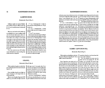 Men zet over het koord 8 steken op en verbindt het tot eene ronding, werkt over het koord vijf toeren vaste ste-ken en meerdert bij iederen toer zoo veel steken als noodig is om het plat te houden, zoodat men bij het einde der vijfde toer 60 steken in de rondte heeft; dan werkt men nog zeven toeren zonder meerderen, doch men zorge vooral het koord gelijk te houden. Hiermede is het hoedje geƫindigd en knipt men het koord af.