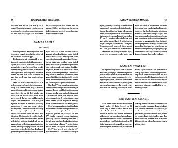 Door het regelmatig op dezelfde plaats voortzetten der meerderingen en minde-ringen, vormen zij in deze beurs zeer zigtbare punten of plooijen. In den 9den en alle volgende toeren slaat men gestadig 2 steken over in plaats van 3, terwijl men tusschen den kettingsteek en de mindering telkens 7 vaste steken werkt, even als bij den achtsten toer.