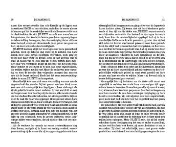 naam dier vrouw zweefde dan ook dikwijls op de lippen van de weduwe SIMON en hare dochter, en indien de eerste al eens te kennen gaf dat de werkelijke wereld niet beantwoordde aan de denkbeelden die zich JULIËTTE vormde van menschen en huisgezinnen, dan kende de laatste geen beter tegenwigt tegen de teleurstelling deswegens, dan de overtuiging dat er althans ééne bestond, evenzeer uitmuntende door gaven van geest en hart, als door schoonheid en bevalligheid.